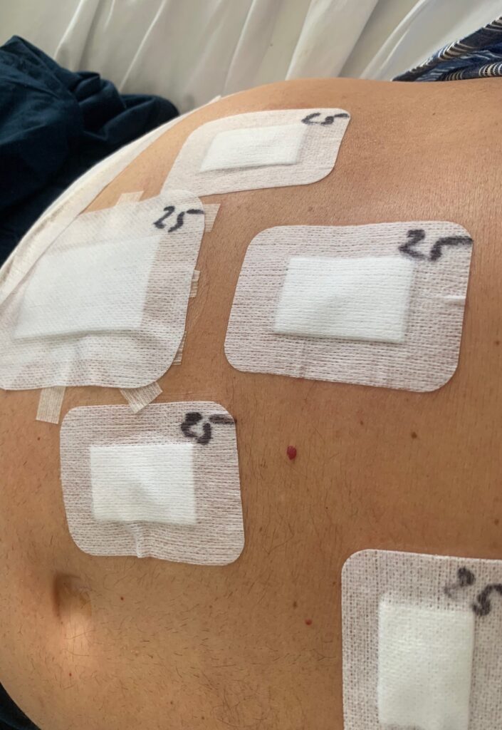 Suite à la plainte de ma voisine (cf commentaire de l’article précédent) j’ai fait changer tous mes pansements pour qu’elle puisse jouer le 25 au jeu de l’oie 😜